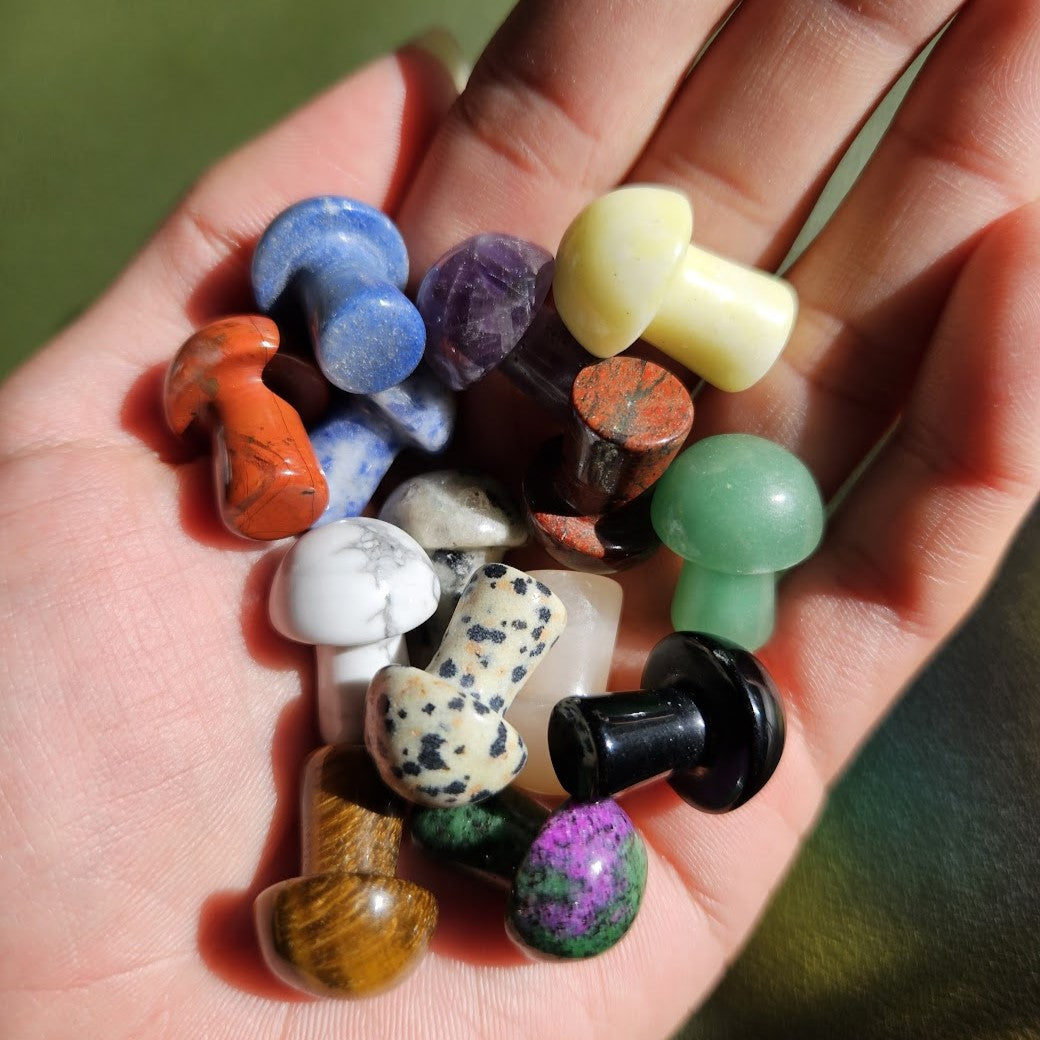 Each mini crystal mushroom carving is polished and measures approximately 30mm. These make wonderful additions to any crystal or figurine collection. They also work on the metaphysical properties of each stone by placing them in spaces that you use frequently or in spiritual practices.